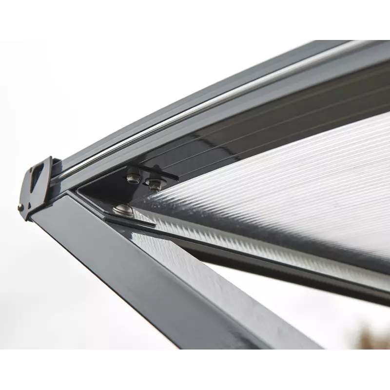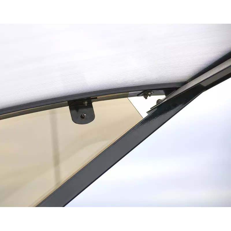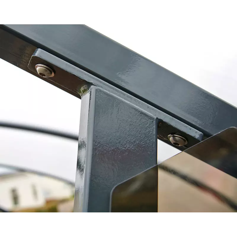 La estructura de acero y el policarbonato anti-UV de 6 mm ofrecen una resistencia superior frente a impactos y esfuerzos.