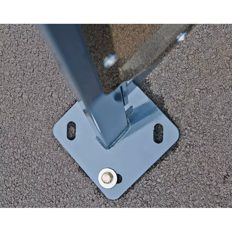 Los cerramientos laterales en policarbonato ahumado proporcionan un acabado elegante y moderno, al tiempo que optimizan la protección contra viento y lluvia lateral. Además, el modelo Eclipse se suministra con un aparcabicicletas tubular de 6 plazas, instalado sobre travesaños mediante tornillos de acero inoxidable.