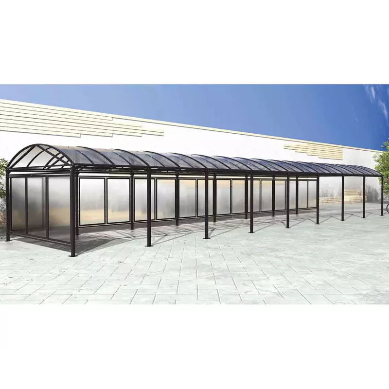 Refugio urbano de gran tamaño y modular para bicicletas .El Trasmoz XXL es un aparcabicis cubierto de gran tamaño, diseñado para ofrecer protección, seguridad y gran capacidad de almacenamiento.