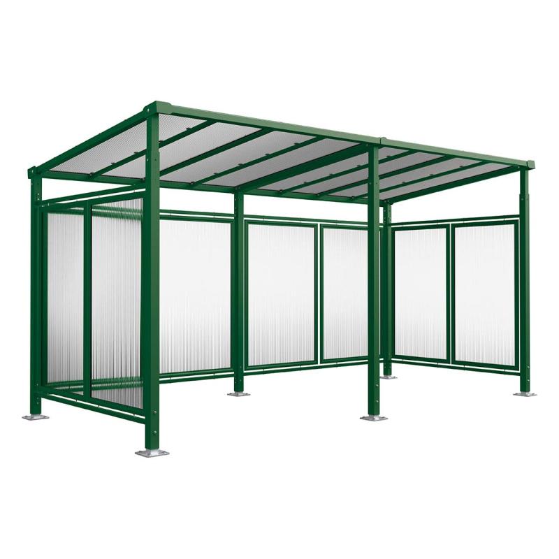 El Aparcabicis Cubierto Canfranc combina un diseño clásico con líneas modernas que encajan en cualquier espacio urbano. Fabricado con una estructura de acero de gran espesor y un sistema de cubierta en policarbonato alveolar con protección anti-UV, garantiza una protección total frente a la lluvia, granizo y exposición solar prolongada.