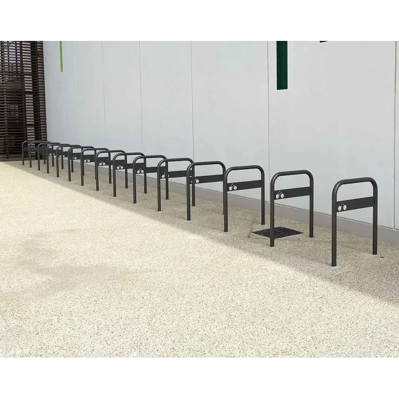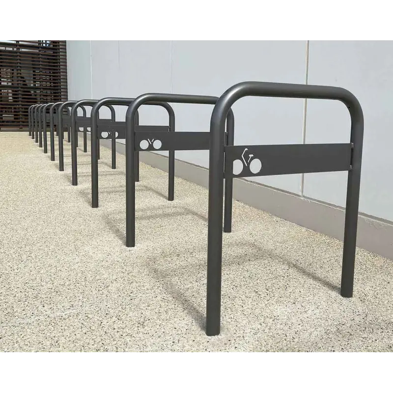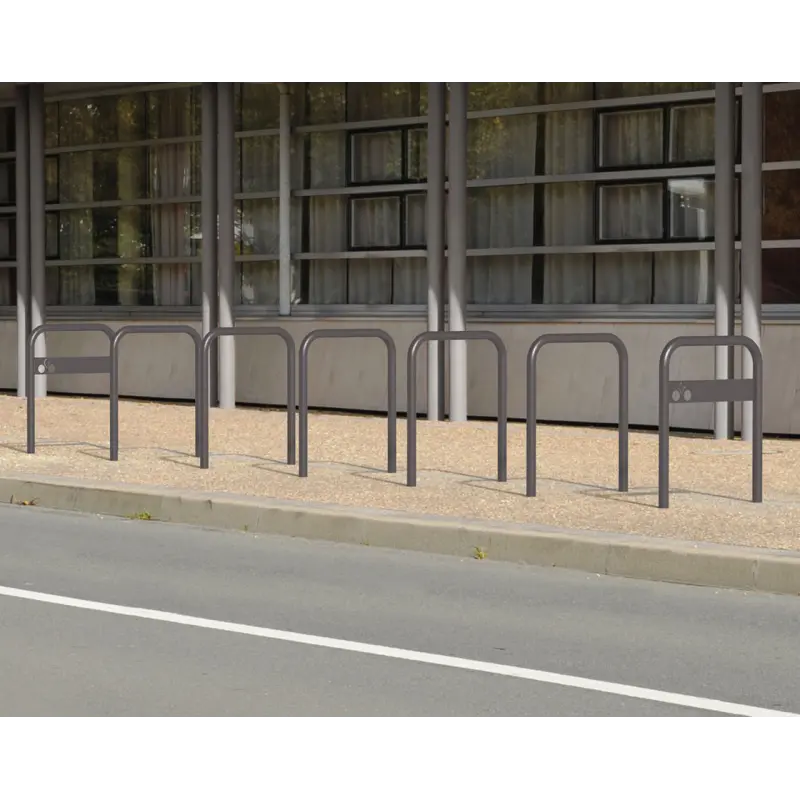 El Aparcabicis Aínsa , aparcabicis de suelo, es una solución práctica y resistente para el estacionamiento ordenado de bicicletas en entornos públicos o privados. Este modelo de suelo está dotado de una señal de bicicletas integrada, lo que permite delimitar claramente las zonas de aparcamiento y mejorar la organización y seguridad de los espacios urbanos.